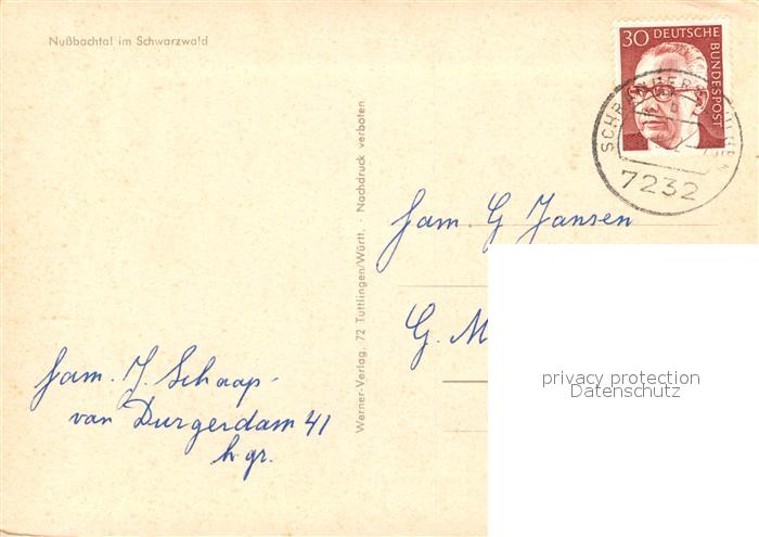 73306669 alte Postkarte Nussbach Schwarzwald Blick ins Nussbachtal postalisch gelaufen Erhaltung siehe scans [WerneD78] KatCode: 11110008326060