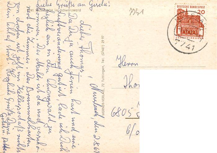 73941853 alte Postkarte Nussbach Schwarzwald Ortsansicht postalisch gelaufen Erhaltung siehe scans [WerneD78] KatCode: 11110008326060