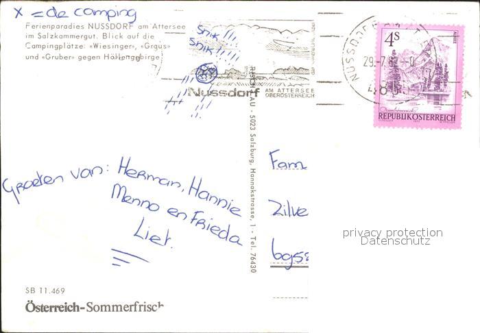 71974483 alte Postkarte Nussdorf Attersee Campingplaetze Wiesinger Grgus Gruber Hoellengebirge postalisch gelaufen Erhaltung siehe scans KatCode: 11390315041718