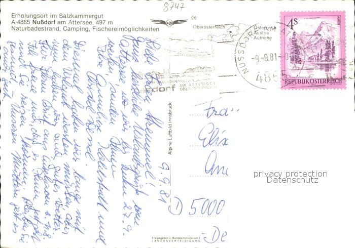 71914867 alte Postkarte Nussdorf Attersee Fliegeraufnahme im Salzkammergut postalisch gelaufen Erhaltung siehe scans KatCode: 11390315041718