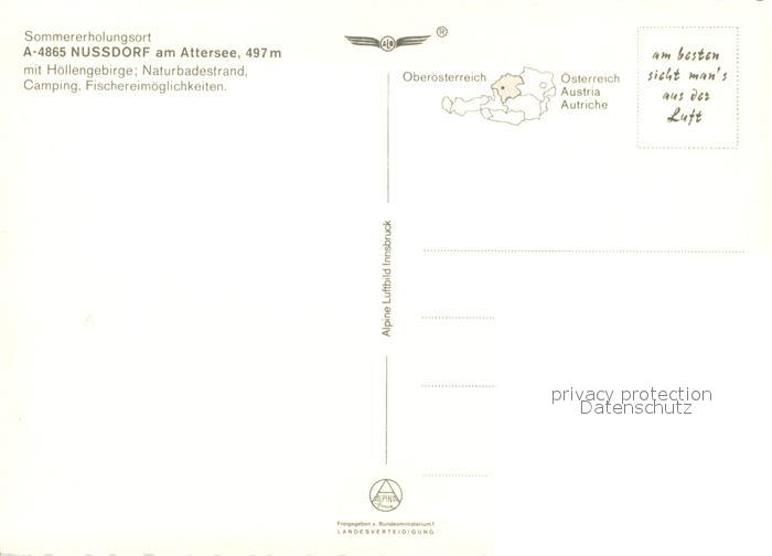 73587528 Nussdorf Attersee Fliegeraufnahme mit Hoellengebirge Naturbadestrand Camping postalisch nicht gelaufen Erhaltung siehe scans [WerneD78] KatCode: 11390315041718