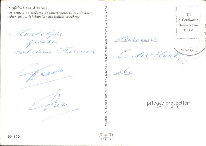 72090909 alte Postkarte Nussdorf Attersee Panorama Gasthof Ragginger Terrasse Dorfmotiv Segelboot postalisch gelaufen Erhaltung siehe scans KatCode: 11390315041718