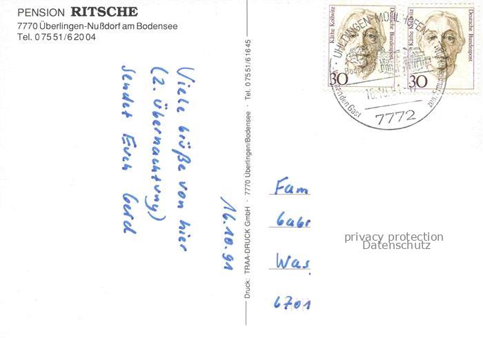 Nussdorf Bodensee ueberlingen BW Pension Ritsche Bootssteg Ansicht vom See aus postalisch gelaufen Erhaltung siehe scans [FriedD77] alte Postkarte Frie Katcode 11110008435059