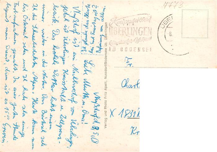73926311 Nussdorf Bodensee ueberlingen Seepartie Ortspartien Kirche postalisch gelaufen Erhaltung siehe scans [FriedD77] alte Postkarte Frie Katcode 11110008435059