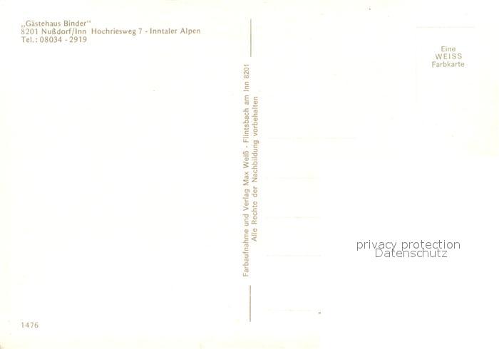 73650800 Nussdorf Inn Gaestehaus Binder postalisch nicht gelaufen Erhaltung siehe scans [WerneD78] KatCode: 11110009187156
