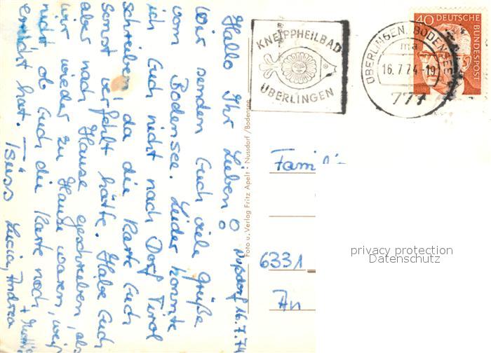 73143983 alte Postkarte Nussdorf ueberlingen Kirche Wegweiser Birnau Bodensee Allee postalisch gelaufen Erhaltung siehe scans [WerneD78] KatCode: 11110008435059