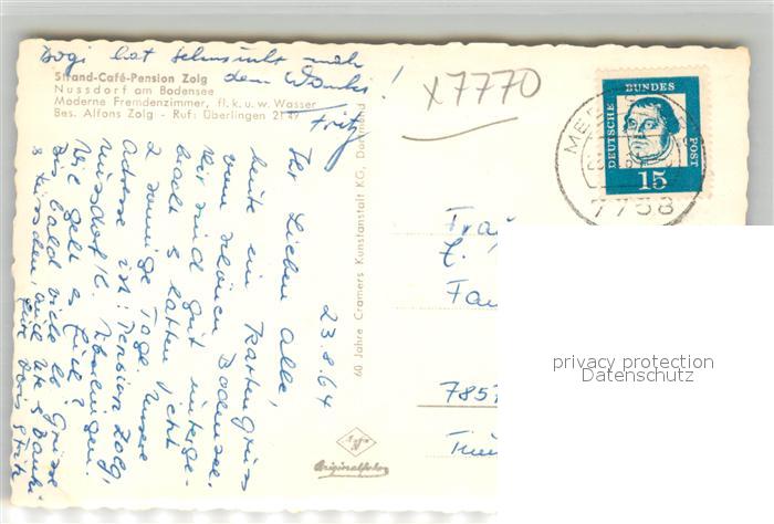 43291013 alte Postkarte Nussdorf ueberlingen Strandcafe Restaurant Pension Zolg postalisch gelaufen Erhaltung siehe scans [KathaD81] KatCode: 11110008435059