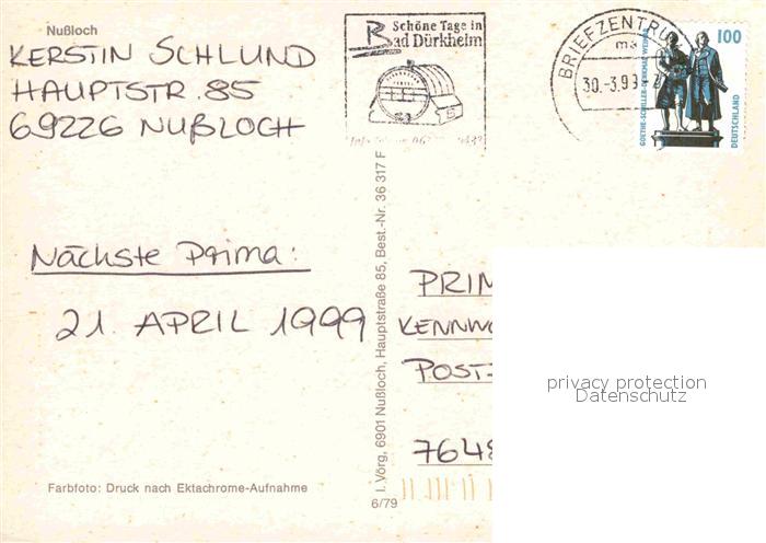72757915 alte Postkarte Nussloch postalisch gelaufen Erhaltung siehe scans [NatalD47] KatCode: 11110008226060