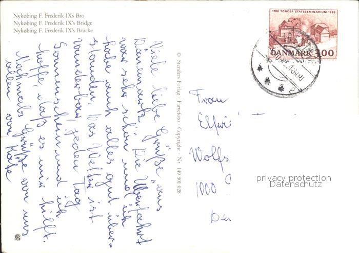 old postcard Nykobing Frederik IXs Bruecke Fliegeraufnahme postalisch gelaufen Erhaltung siehe scans