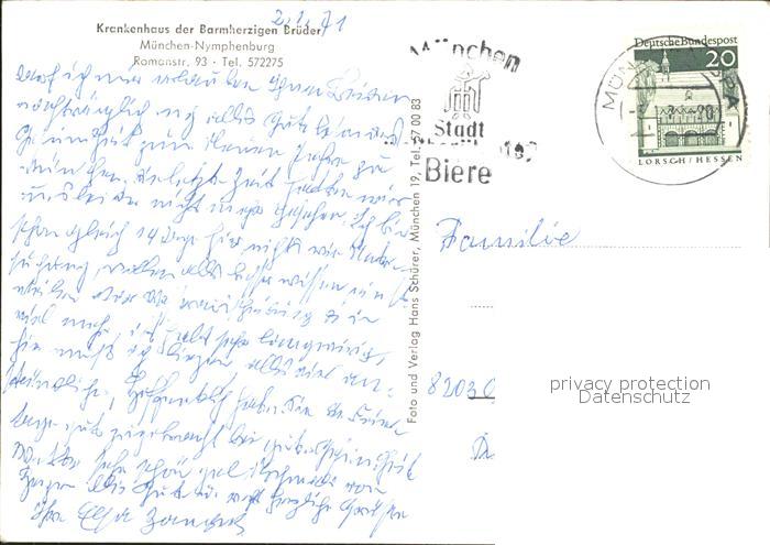 71925770 alte Postkarte Nymphenburg Krankenhaus der Barmherzigen Brueder postalisch gelaufen Erhaltung siehe scans KatCode: 11110009162000