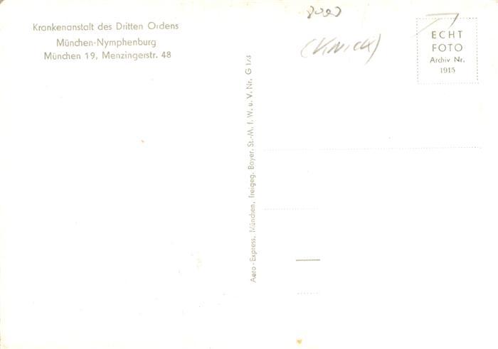 73942140 Nymphenburg Muenchen Krankenanstalt des Dritten Ordens postalisch nicht gelaufen Fliegeraufnahme Erhaltung siehe scans [FriedD77] KatCode: 11110009162000
