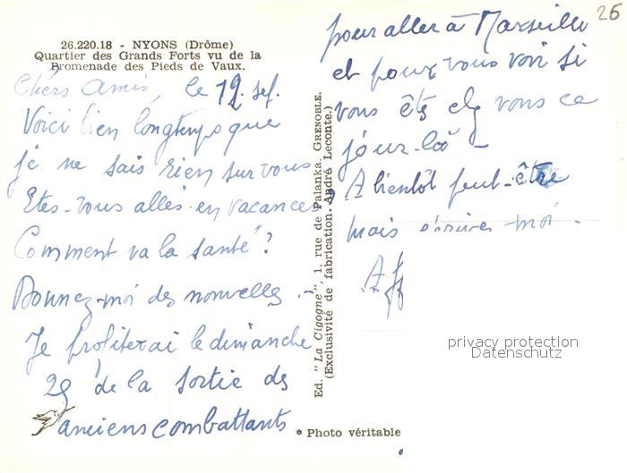 13526192 Nyons Drome Quartier des Grands Forts vu de la Promenade des Pieds de Vaux postalisch nicht gelaufen Erhaltung siehe scans [FriedD77] KatCode: 11170026226220