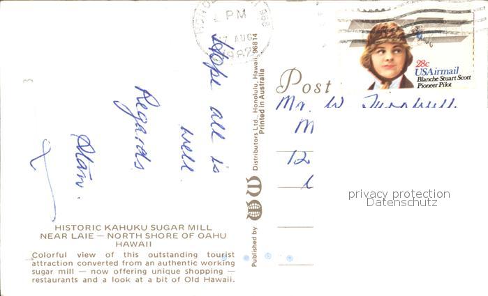 72250046 old postcard Oahu Historic Kahuku Sugar Mill Near Laie Flags postalisch gelaufen Erhaltung siehe scans KatCode: 14140130000000