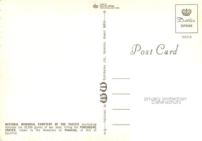 73717504 Oahu National Memorial Cemetary of the Pacific Punch Bowl Crater aerial view postalisch nicht gelaufen Erhaltung siehe scans [FriedD77] KatCode: 14140130000000