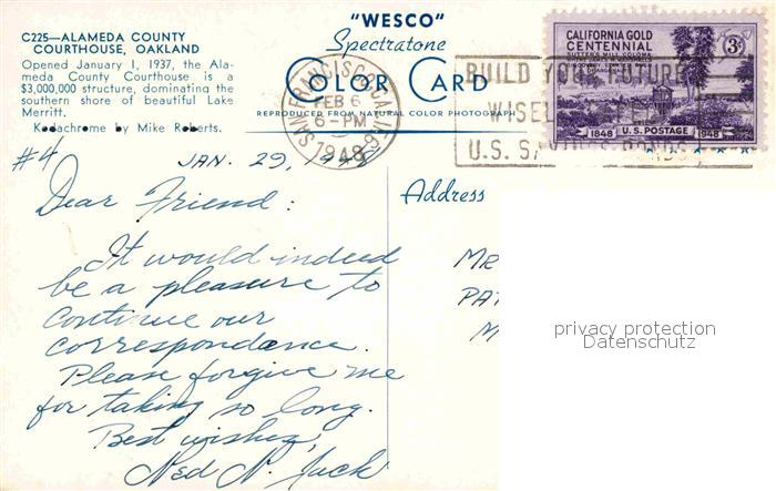 72820915 old postcard Oakland California Courthouse Alameda Country postalisch gelaufen Erhaltung siehe scans [LiesaD40] KatCode: 14140050000000