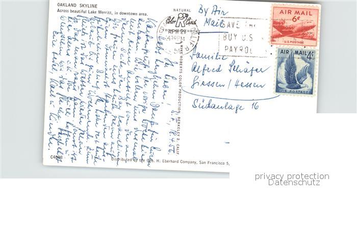 72526736 old postcard Oakland California Skyline across Lake Merritt postalisch gelaufen Erhaltung siehe scans KatCode: 14140050000000