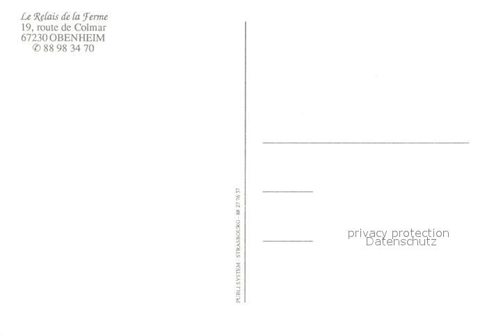 13740067 Obenheim Hotel Restaurant Le Relais de la Ferme Gaststube Terrasse Zimmer postalisch nicht gelaufen Erhaltung siehe scans [FriedD77] Frie Katcode 11170067567338
