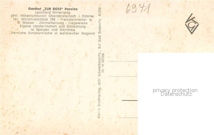 73783630 Ober-Abtsteinach Gasthof Zur Post Aussenansicht m. Pool u. Garten postalisch nicht gelaufen Erhaltung siehe scans [LiesaD40] KatCode: 11110006431001