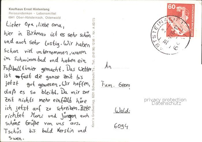 72110908 alte Postkarte Ober-Abtsteinach Kaufhaus Ernst Hintenlang postalisch gelaufen Erhaltung siehe scans KatCode: 11110006431001