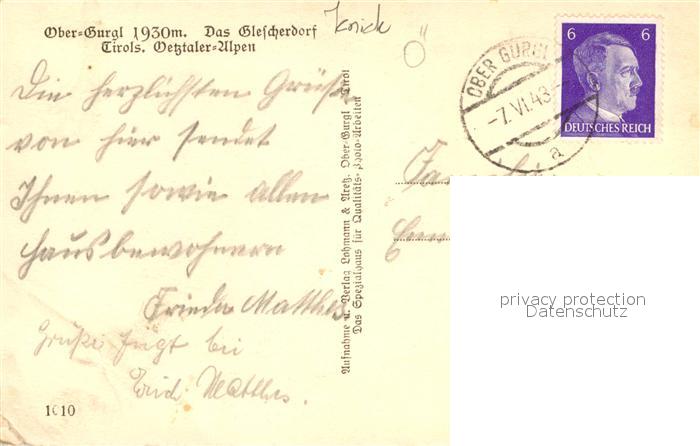 42998861 alte Postkarte Ober-Gurgl Teilansicht mit Gletscher postalisch gelaufen Erhaltung siehe scans [AndreD76] KatCode: 11390