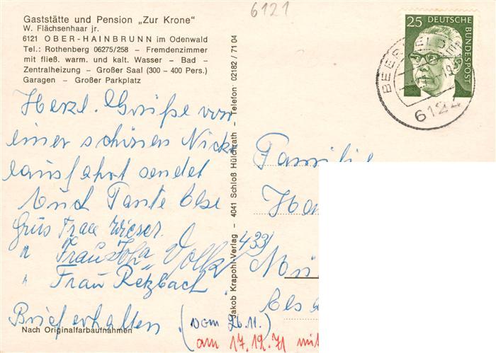 73894529 alte Postkarte Ober-Hainbrunn Gaststaette Pension Zur Krone Gastraeume Panorama postalisch gelaufen Erhaltung siehe scans [WerneD78] KatCode: 11110006437014