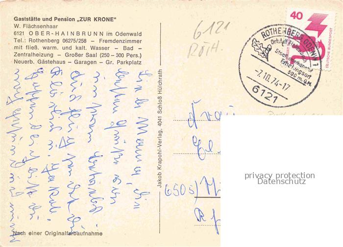 74099903 alte Postkarte Ober-Hainbrunn Rothenberg Odenwaldkreis Hessen Panorama Heuwagen Gaststaette Zur Krone Gastraeume postalisch gelaufen Erhaltung siehe scans [WerneD78] KatCode: 11110006437014