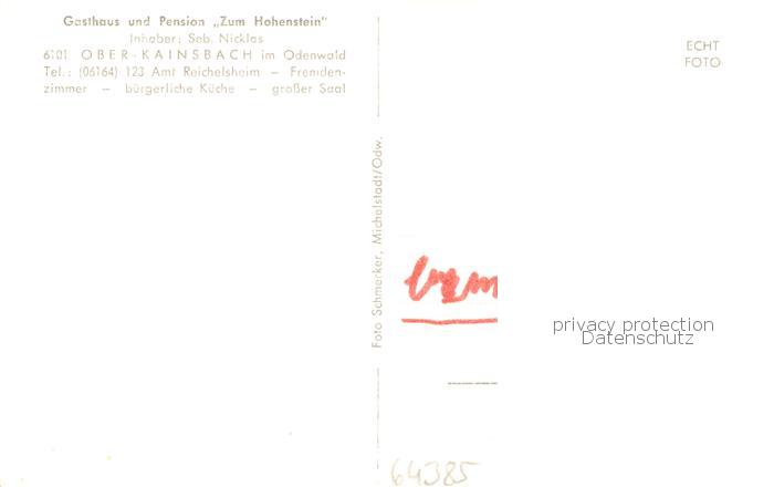 73782458 Ober-Kainsbach Gasthaus-Pension Zum Hohenstein Innenansicht postalisch nicht gelaufen Erhaltung siehe scans [LiesaD40] KatCode: 11110006437013