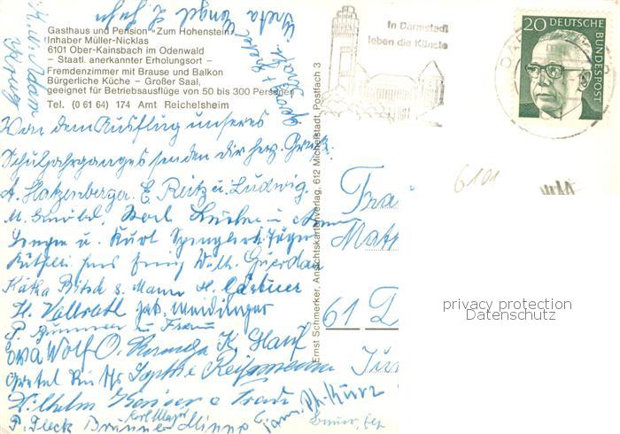 73776057 alte Postkarte Ober-Kainsbach Gasthaus Pension Zum Hohenstein postalisch gelaufen Erhaltung siehe scans [WerneD78] KatCode: 11110006437013