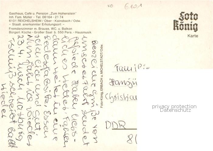 73863411 Ober-Kainsbach Reichelsheim Gasthaus Cafe und Pension Zum Hohenstein Gastraum Saal postalisch nicht gelaufen Erhaltung siehe scans [FriedD77] KatCode: 11110006437013