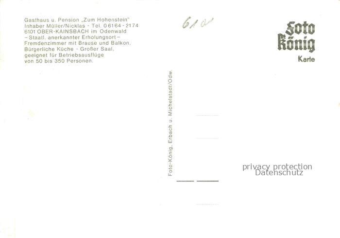 74043994 Ober-Kainsbach Reichelsheim Gasthaus Zum Hohenstein Gastraeume Speisesaal postalisch nicht gelaufen Erhaltung siehe scans [WerneD78] KatCode: 11110006437013