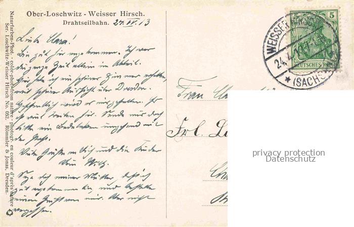 74057782 alte Postkarte Ober-Loschwitz Oberloschwitz DRESDEN Weisser Hirsch Drahtseilbahn postalisch gelaufen Erhaltung siehe scans [WerneD78] KatCode: 11110014262000