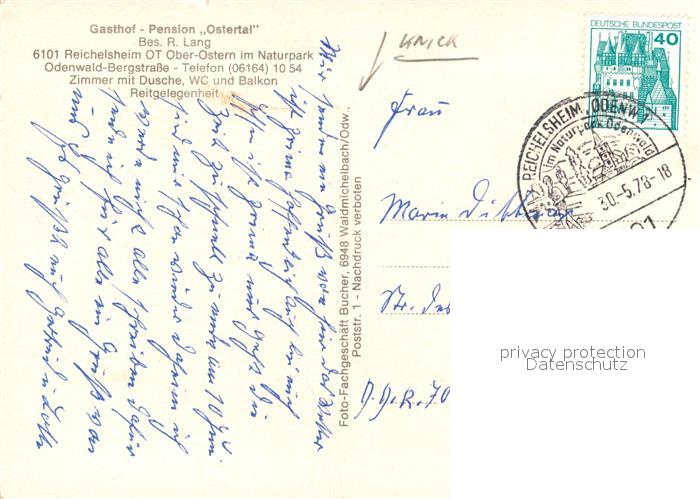 73608024 alte Postkarte Ober-Ostern Gasthof Pension Zum Ostertal Gastraeume postalisch gelaufen Erhaltung siehe scans [WerneD78] KatCode: 11110006437013