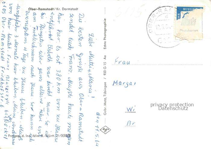 74020786 alte Postkarte Ober-Ramstadt Oberramstadt Muehltal DARMSTADT Fliegeraufnahme postalisch gelaufen Erhaltung siehe scans [WerneD78] KatCode: 11110006432016
