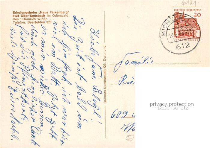 73860744 alte Postkarte Ober-Sensbach Erholungsheim Haus Falkenberg im Odenwald postalisch gelaufen Erhaltung siehe scans [FriedD77] KatCode: 11110006437015