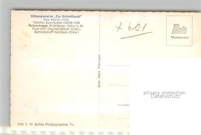 42943507 Ober-Sensbach Hoehenpension Zur Schmittsruh postalisch nicht gelaufen Erhaltung siehe scans [AndreD76] KatCode: 11110006437015