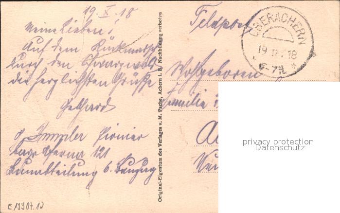 31910357 alte Postkarte Oberachern postalisch gelaufen Feldpost Erhaltung siehe scans KatCode: 11110008317001