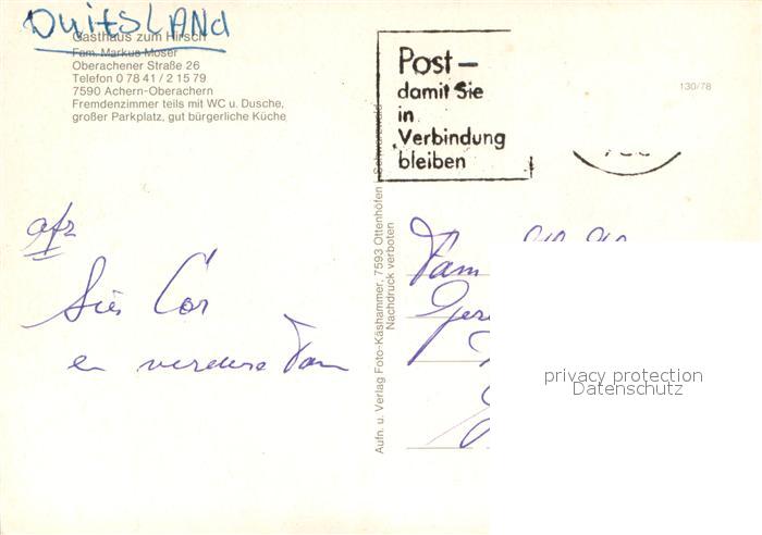 73731206 alte Postkarte Oberachern Gasthaus zum Hirsch Restaurant postalisch gelaufen Erhaltung siehe scans [FriedD77] KatCode: 11110008317001