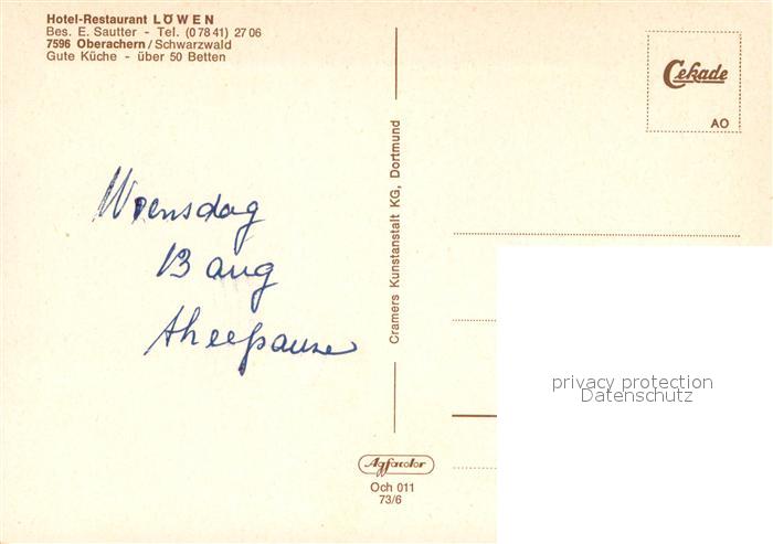 73717333 Oberachern Hotel Restaurant Loewen Panorama postalisch nicht gelaufen Erhaltung siehe scans [WerneD78] KatCode: 11110008317001