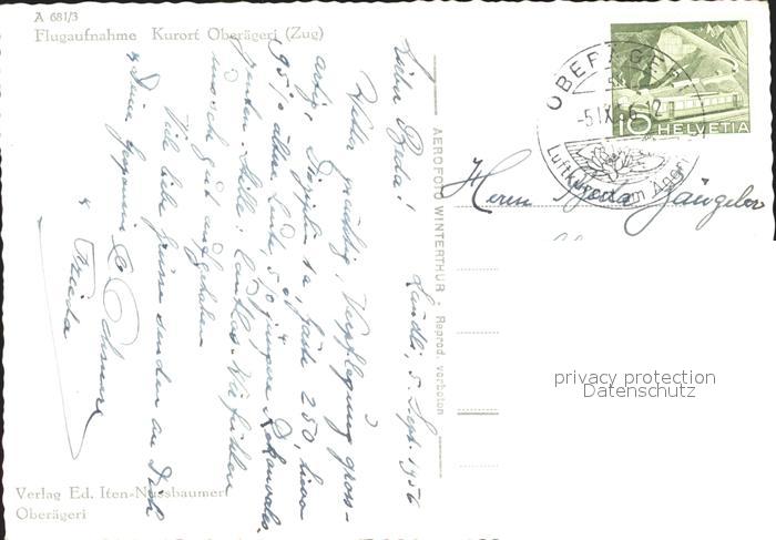 11655033 alte Postkarte Oberaegeri Fliegeraufnahme postalisch gelaufen Erhaltung siehe scans KatCode: 11470250855008