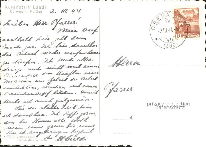 11655627 alte Postkarte Oberaegeri Kuranstalt Laendli postalisch gelaufen Erhaltung siehe scans KatCode: 11470250855008