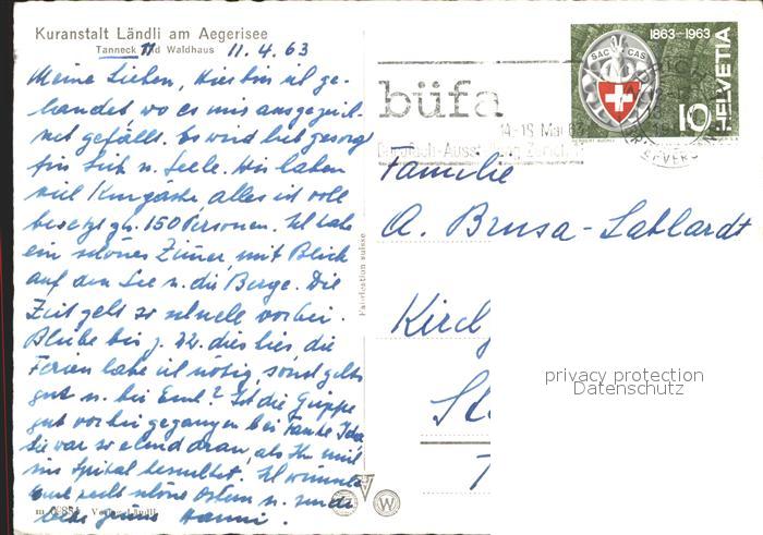 11655130 alte Postkarte Oberaegeri Kuranstalt Laendli postalisch gelaufen Erhaltung siehe scans KatCode: 11470250855008