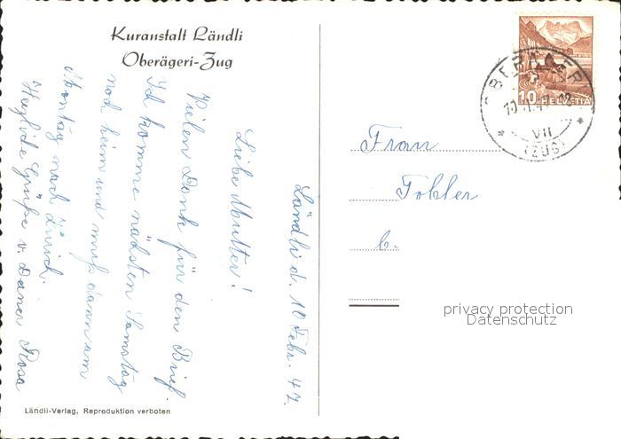 11643010 alte Postkarte Oberaegeri Kuranstalt Laendli See postalisch gelaufen Erhaltung siehe scans KatCode: 11470250855008
