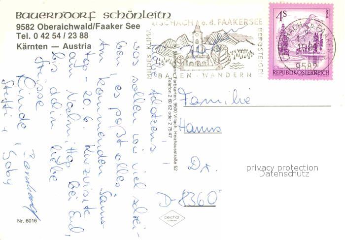 72673340 alte Postkarte Oberaichwald Finkenstein Bauerndorf Schoenleitn postalisch gelaufen Erhaltung siehe scans [FriedD77] KatCode: 11390211020711