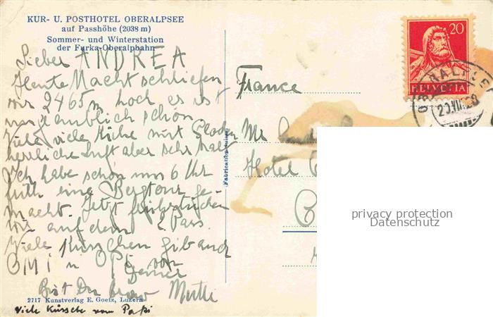 34142673 alte Postkarte Oberalpsee Andermatt UR Kur und Posthotel mit Furka Oberalpbahn Sommer und Winterstation postalisch gelaufen Erhaltung siehe scans [WerneD78] KatCode: 11470220685180