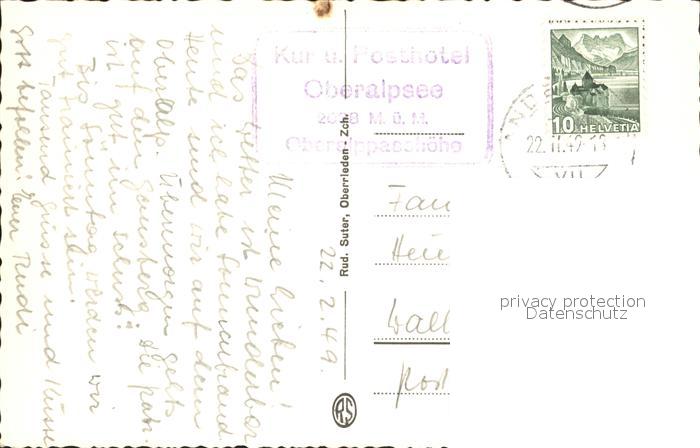 12346110 alte Postkarte Oberalpsee Hotel Oberalpsee mit Piz Calmot postalisch gelaufen Erhaltung siehe scans KatCode: 11470220685180
