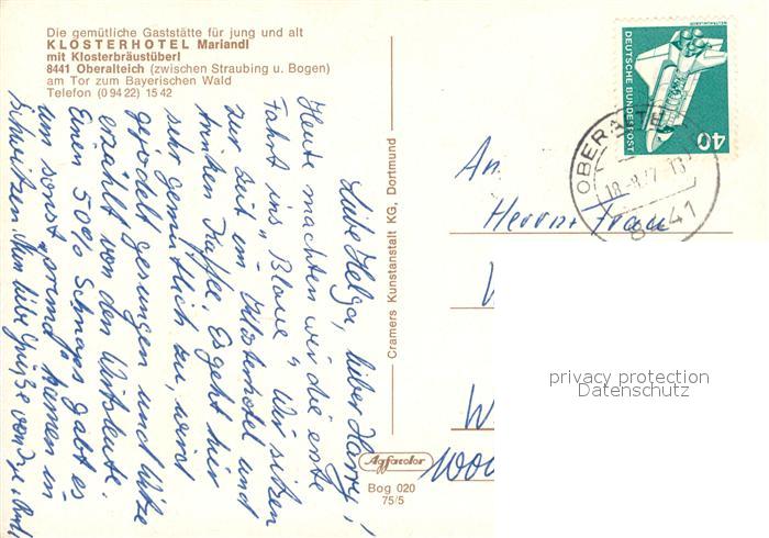 73086881 alte Postkarte Oberalteich Klosrerhotel Mariandl postalisch gelaufen Erhaltung siehe scans [KathaD81] KatCode: 11110009278118