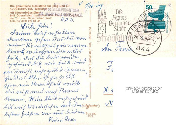 72889956 alte Postkarte Oberalteich Klosterhotel Mariandl Restaurant Klosterbraeustueberl postalisch gelaufen Erhaltung siehe scans [FriedD77] KatCode: 11110009278118