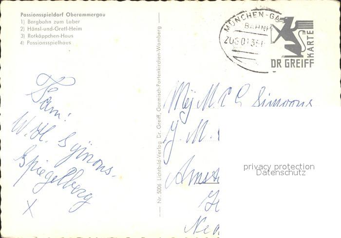 72303750 alte Postkarte OBERAMMERGAU Bayern Bergbahn zum Laber Haensl und Gretl- Heim Rotkaeppchen- Haus postalisch gelaufen Erhaltung siehe scans KatCode: 11110009180125