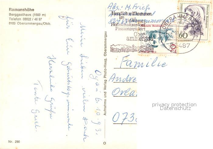 73712684 OBERAMMERGAU Bayern Berggasthaus Romanshoehe im Sommer postalisch gelaufen Erhaltung siehe scans [FriedD77] alte Postkarte Frie Katcode 11110009180125