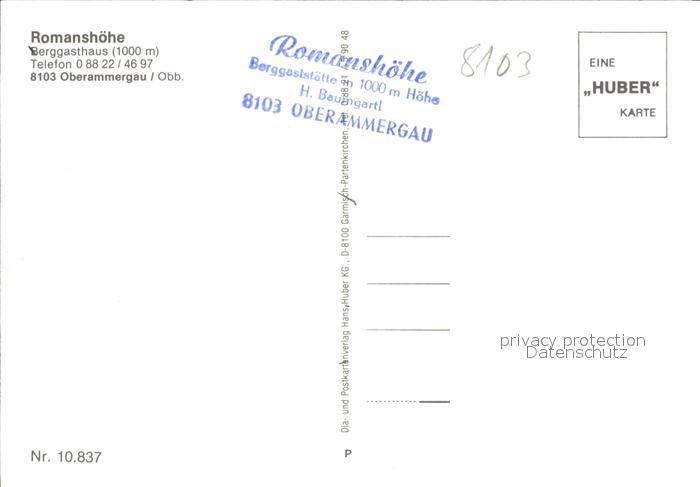 72443231 OBERAMMERGAU Bayern Berggasthaus Romanshoehe postalisch nicht gelaufen Erhaltung siehe scans KatCode: 11110009180125